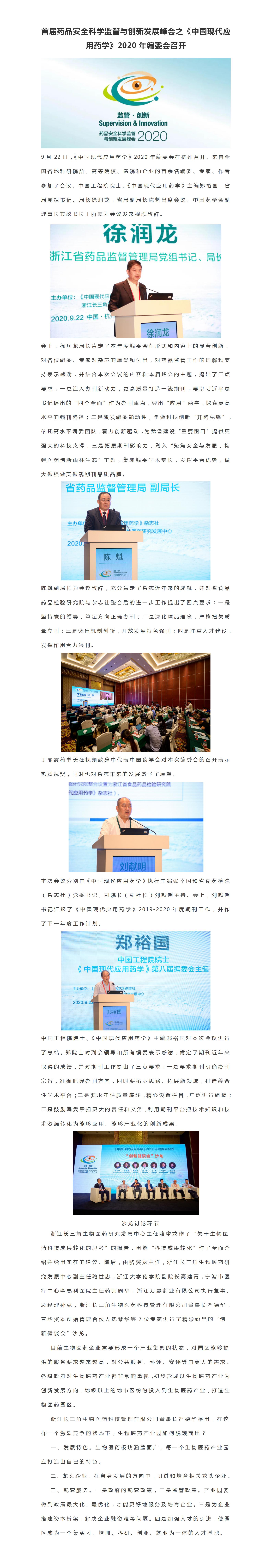 首屆藥品安全科學(xué)監(jiān)管與創(chuàng)新發(fā)展峰會(huì)之《中國現(xiàn)代應(yīng)用藥學(xué)》2020年編委會(huì)召開
