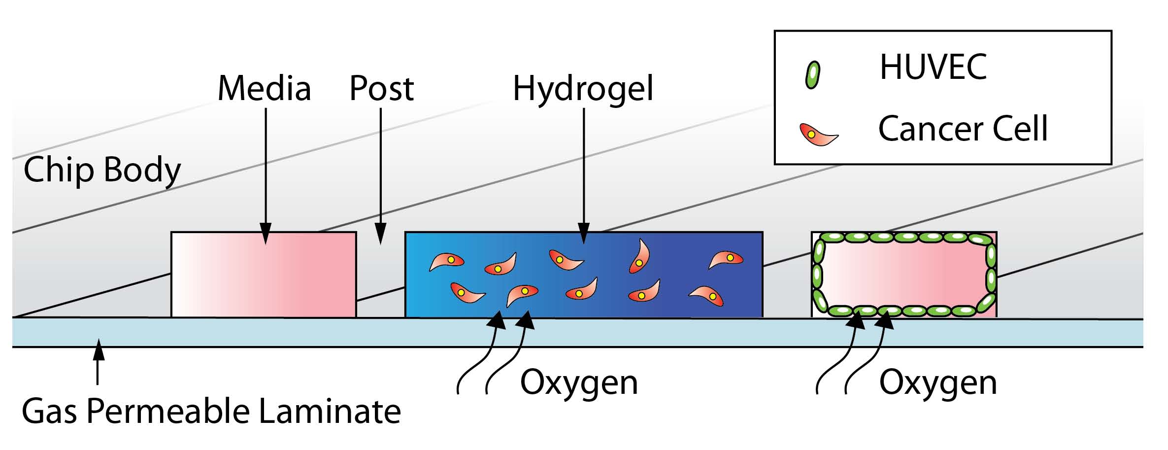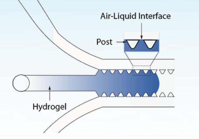 水凝膠貫穿在整個AIM芯片的間隙中,流體及化學物濃度梯度都可以被控制和調(diào)節(jié)。
