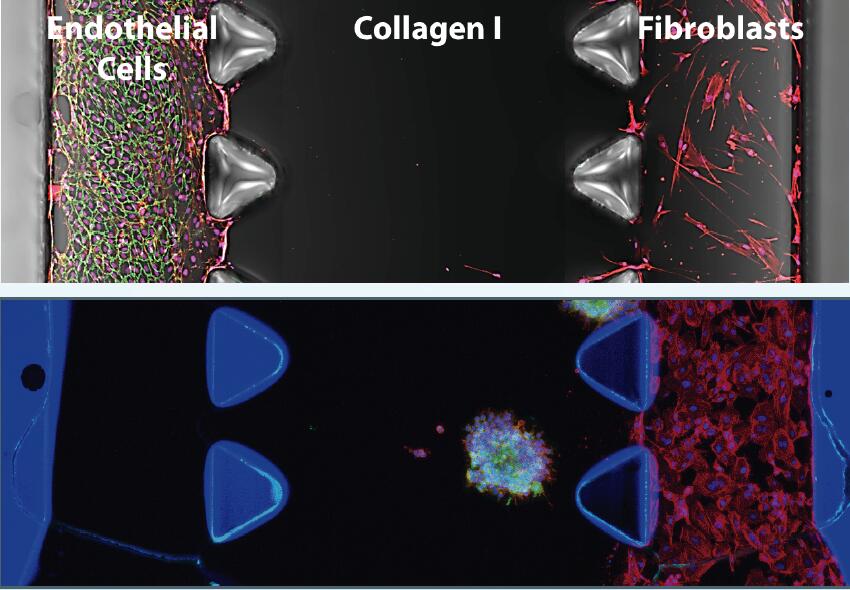 不同類型的細胞可以在同一通道內(nèi)培養(yǎng),或者也可以被分隔至不同的通道。